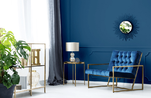 Olśniewający, błyszczący oraz nadzwyczaj luksusowy - taki właśnie jest styl glamour. W jego konwencję świetnie wpisuje się Kolor Roku 2020, który podkreśli elegancję tego designu. W salonie można wykorzystać go jako dominujący element dekoracyjny w postaci designerskiego fotela, a nawet zestawu mebli wypoczynkowych. Świetnie sprawdzi się też granatowa ściana przystrojona pozłacanymi ramami czy bogato zdobionym zegarem w ekskluzywnej stylistyce.