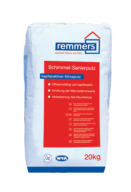 Po odcięciu dopływu wilgoci czas na tynkowanie. Stosujemy tynki renowacyjne, gromadzące sole wydostające się ze ścian. Tynki renowacyjne Remmers Sanierputz WTA po wykonaniu niezbędnych prac hydroizolacyjnych mogą być nakładane na ściany o wysokim obciążeniu solami. Są lekkie, zawierają w swej strukturze przestrzenie, w których mogą gromadzić się sole wydostające się z zawilgoconych ścian. Tynki renowacyjne Remmers poddawane są kontroli niezależnego instytutu badawczego, który nadaje im certyfikat jakości oznaczony skrótem WTA. Tynki Remmers cechują się określoną nasiąkliwością kapilarną, a dzięki wysokiej porowatości (ponad 40% w związanym tynku), bardzo łatwo wysychają. Dzięki temu strefa odparowania znajduje się wewnątrz tynku. Sole transportowane z zawilgoconego muru odkładają się wewnątrz tynku nie niszcząc spoiwa, powierzchni tynku ani powłok malarskich.