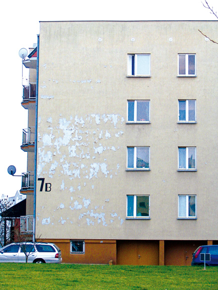 Odspojenia tynku wykonywanego na wilgotnym podłożu. Widać także ślady bezskutecznych napraw wykonywanych w warunkach późnej jesieni
