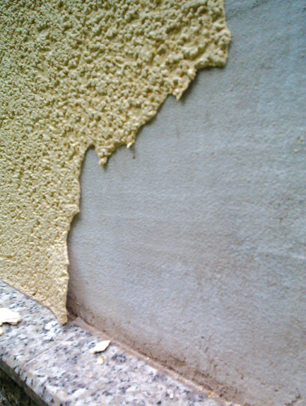 Nieprawidłowy wygląd tynku w efekcie nierównomiernego rozłożenia masy tynkarskiej