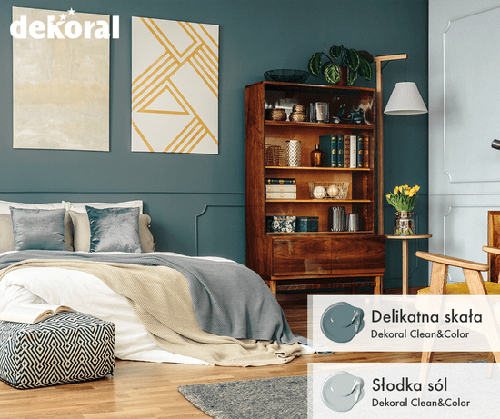 Salon to wnętrze, w którym toczy się życie towarzyskie całej rodziny. Ważny jest tutaj dobry nastrój, harmonia, wspólne przeżycia. Dzięki łagodnym, złamanym odcieniom zieleni z nowej kolekcji (Zimne Ognie) i jasnym błękitem (Słodka Łza), mamy szansę stworzyć pomieszczenie przytulne i wprawiające w dobry nastrój. Nie bójmy się też eksperymentów, czy bardziej odważnych zestawień w salonie. Nowym trendem w branży wnętrzarskiej w tym roku jest m.in. zestawianie intensywnych kolorów z pastelowymi. Taka kompozycja pozwala złamać powagę ciemnej tonacji, a delikatnym, jasnym barwom dodać dynamiki i wyrazu. W palecie Dekoral jest szeroki wybór kolorów, które można kreatywnie łączyć, osiągając harmonię i spójność stylistyczną. Zestawienie ciemnej zieleni (Delikatna Skała) z chłodną szarością (Słodka Sól) stworzą wnętrza nowoczesne, stylowe, a jednocześnie bezpieczne, pełne rodzinnych emocji.