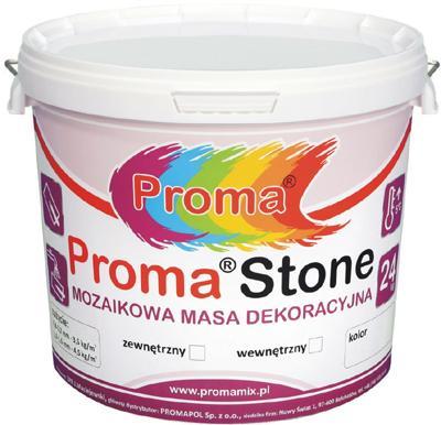 PromaStone to gotowa do użycia zaprawa o konsystencji ziarniastej pasty, na spoiwie z wodnych dyspersji żywic akrylowych, zawierająca kwarcowe i marmurowe kruszywa naturalne lub barwione oraz dodatki ulepszające.