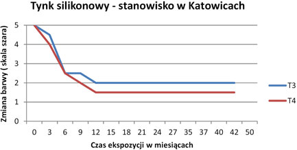 Wykres 1. Przebieg zabrudzeń próbek tynków silikonowych w Katowicach