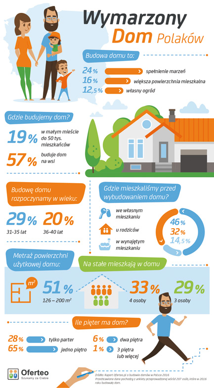 Tegoroczna, piąta już, edycja „Raportu o budowie domów w Polsce” podsumowuje rok 2016. Wyniki badania przeprowadzonego przez Oferteo.pl, serwis łączący w czasie rzeczywistym poszukujących towarów i usług z ich dostawcami, wyraźnie wskazują na niesłabnącą popularność trendów dotyczących m.in. metrażu budowanego domu bądź wyboru materiałów, z których został on zbudowany. Natomiast w porównaniu z poprzednią edycją widać różnicę w podejściu ankietowanych użytkowników portalu do nowoczesnych rozwiązań z zakresu ogrzewania domów: coraz większą popularnością cieszą się bowiem pompy ciepła i kolektory słoneczne.