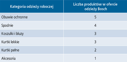 Wiosną 2012 roku Bosch wprowadził do sprzedaży profesjonalną odzież roboczą. Asortyment obejmuje kurtki, spodnie, koszulki, kamizelki, obuwie ochronne oraz nakolanniki. Wszystkie produkty wykonane są z wytrzymałych i innowacyjnych materiałów najwyższej jakości. Ten krok jest naturalnym rozszerzeniem systemowej oferty produktów skierowanych do profesjonalistów.